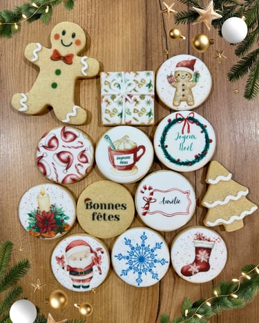 Tout peut être imprimé sur vos biscuits : une photo, un dessin d'enfant (ou l'une de vos créations !), une image, ou un visuel créé par mes soins sur mesure.